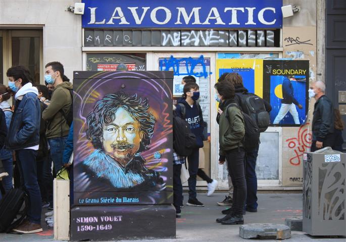 Le portrait ci-dessous a été placé près de l'église Saint-Paul Saint-Louis pour laquelle le peintre a réalisé le célèbre tableau La Présentation au Temple, actuellement conservé au musée du Louvre